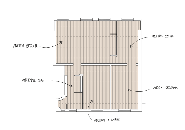 Voici un projet de rénovation particulier. En plein Paris, cet appartement de 60 m2 dans un immeuble ancien en pierre de taille était totalement à rénover. Les pièces existantes étaient inadaptées, séquencées, et ne permettaient pas de profiter de vaste espace de vie qu'offrait cet appartement.